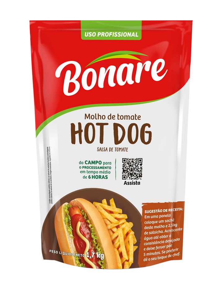 Molho de Tomate Bonare Hot Dog Sache 1,7Kg