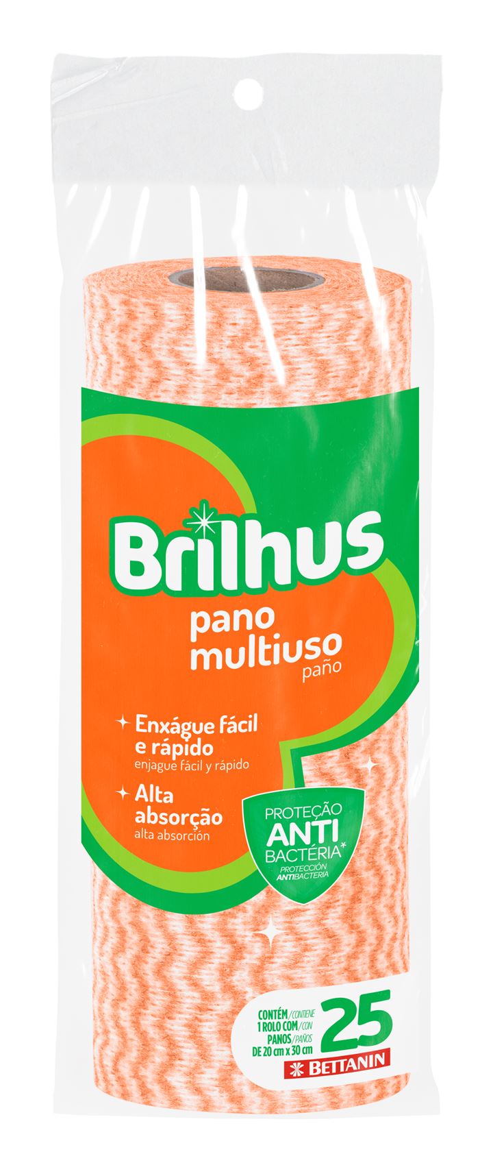 Pano Brilhus Multiuso Rolo Laranja 25un