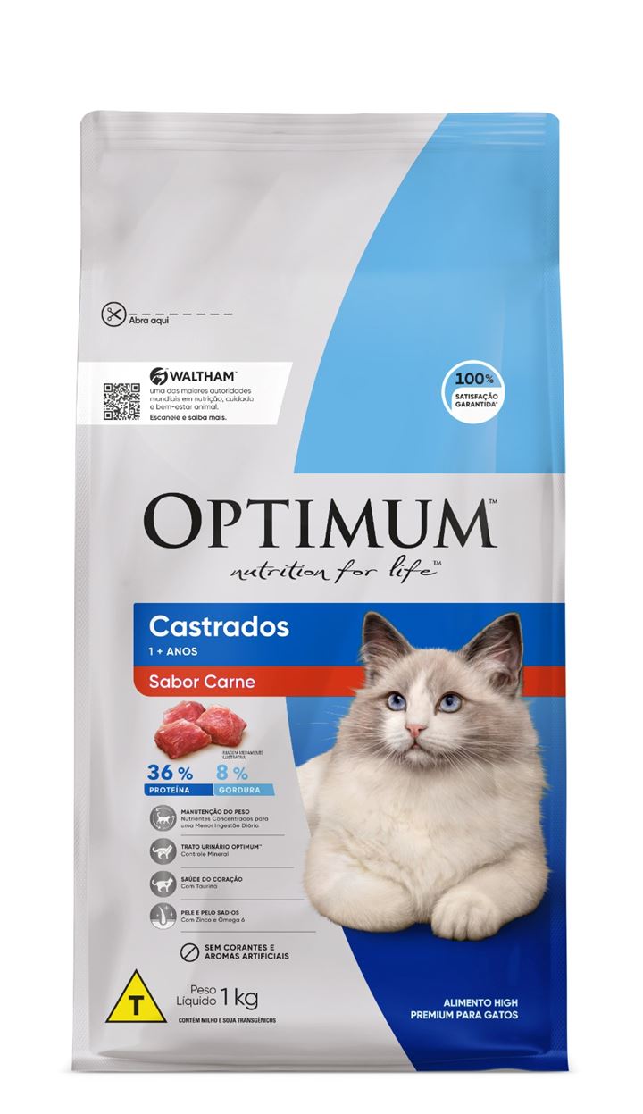 Ração Optimum Cat Adulto Castrados Carne 1Kg